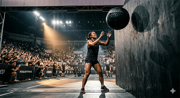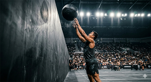 สถานีที่ 8 — Wall Balls (75 หรือ 100 ลูก) ทุ่มลูกบอลหนักใส่กำแพงในระดับที่กำหนด ปิดท้ายการแข่งขันด้วยสถานีที่หนักและเจ็บปวดที่สุด