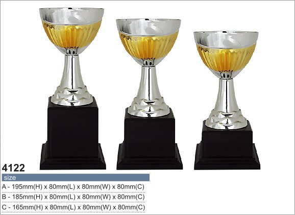 ถ้วยรางวัลพลาสติก 4122 สีทอง เทา มี สามขนาด A,B,C