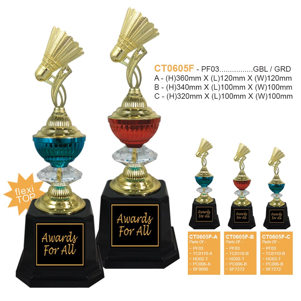 ถ้วยรางวัล พลาสติก รุ่น CT0605F พร้อมฐาน และหัวป้าย