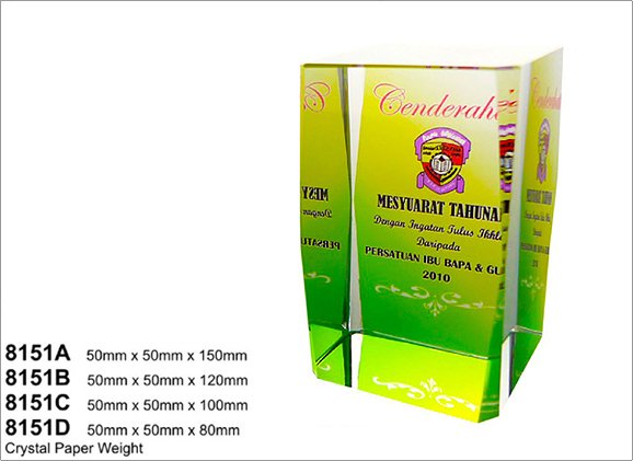 ถ้วยรางวัล คริสตัลสี รหัส 8151 เพื่องานกิจกรรมที่สร้างสีสัน ทำตามแบบไม่มีขีดจำกัด ลูกค้าสามารถออกแบบงานได้อย่างง่ายตามรูปแบบที่ต้องการ