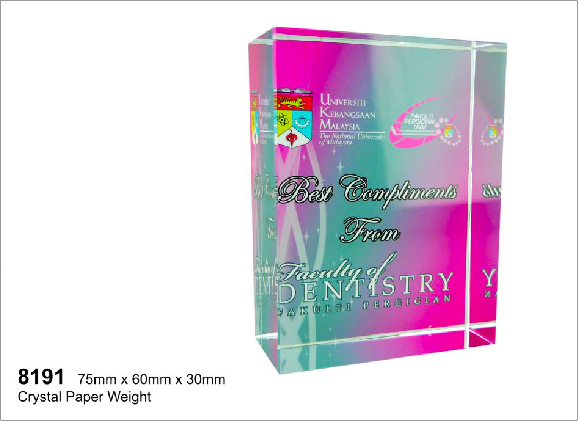 ถ้วยรางวัล คริสตัลสี รหัส 8191 เพื่องานกิจกรรมที่สร้างสีสัน ทำตามแบบไม่มีขีดจำกัด ลูกค้าสามารถออกแบบงานได้อย่างง่ายตามรูปแบบที่ต้องการ