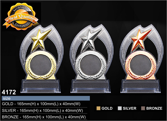 โล่อะคริลิคสำเร็จรูป 4172 สำหรับ มอบรางวัล สำหรับกิจกรรม หรือ การแข่งขันต่างๆ เช่น กีฬาสี แข่งขันวิ่งแข่ง มาราธอน เดินวิ่ง ฟุตบอล เป็นต้น