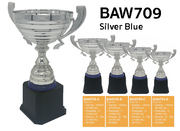 ถ้วยรางวัล BAW709 Silver Blue พร้อมฐาน ถ้วยพลาสติก เหมาะสำหรับมอบรางวัล