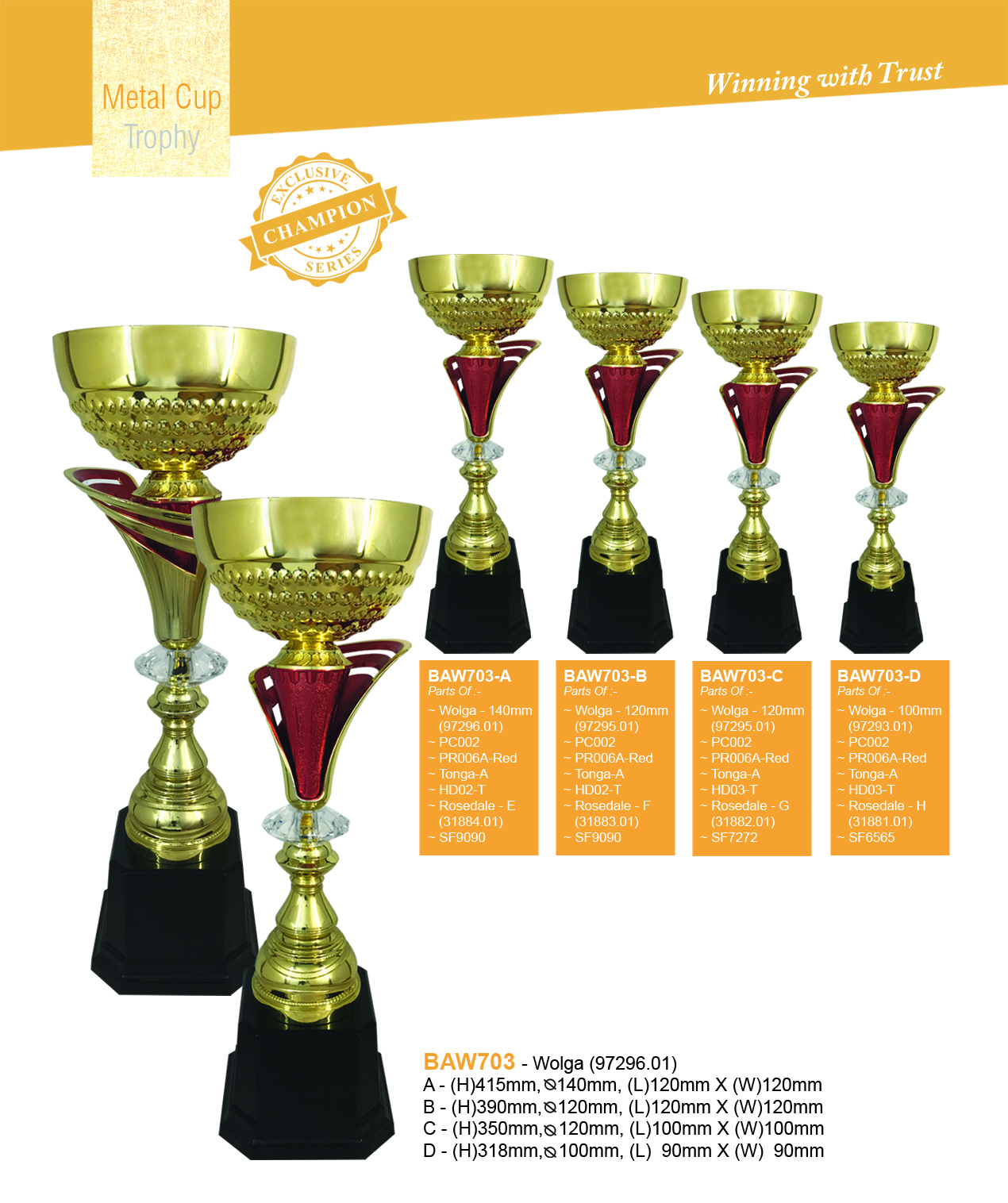 ถ้วยรางวัลโลหะ รุ่น BAW703 Gold สลับสีแดง